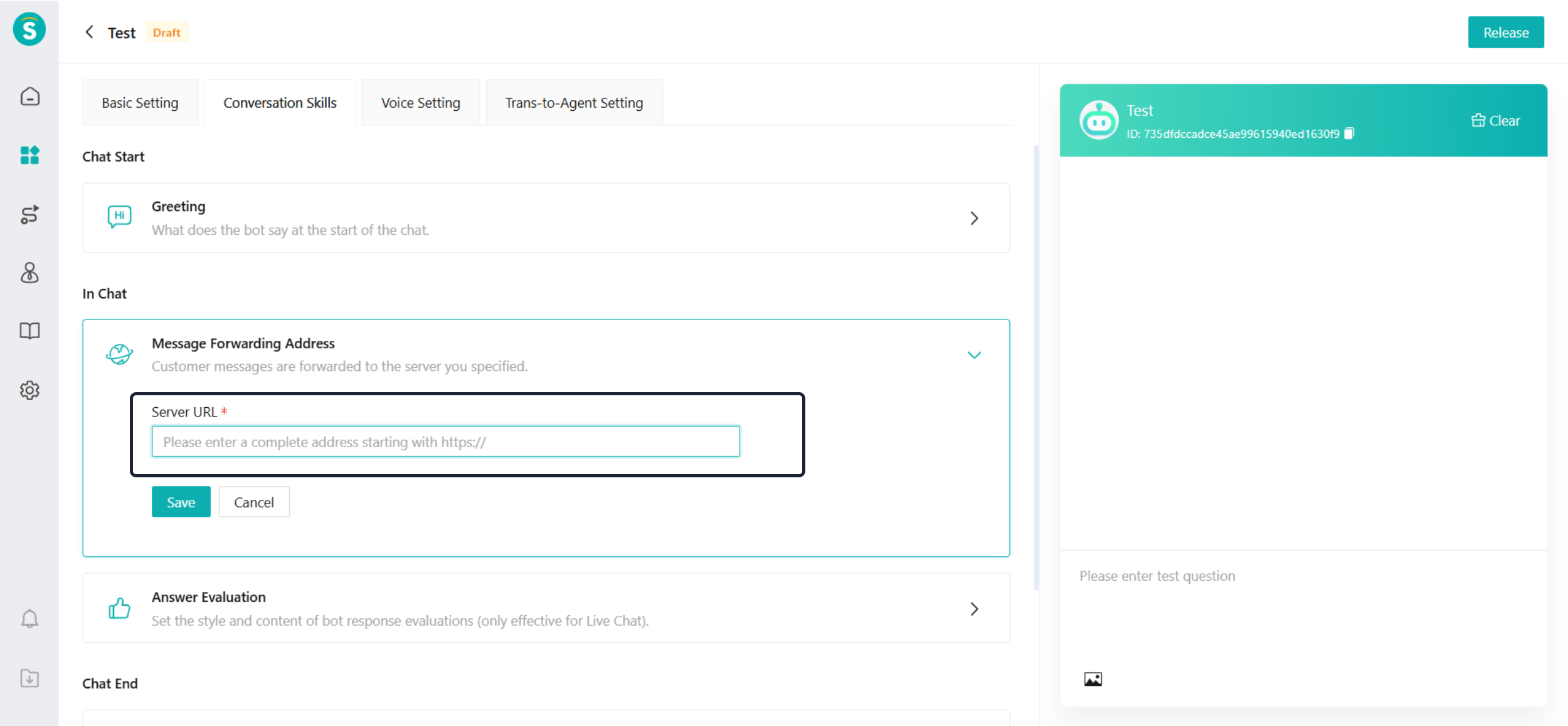 a. When a customer starts a conversation, Sobot will forward the customer's message to the message forwarding address.