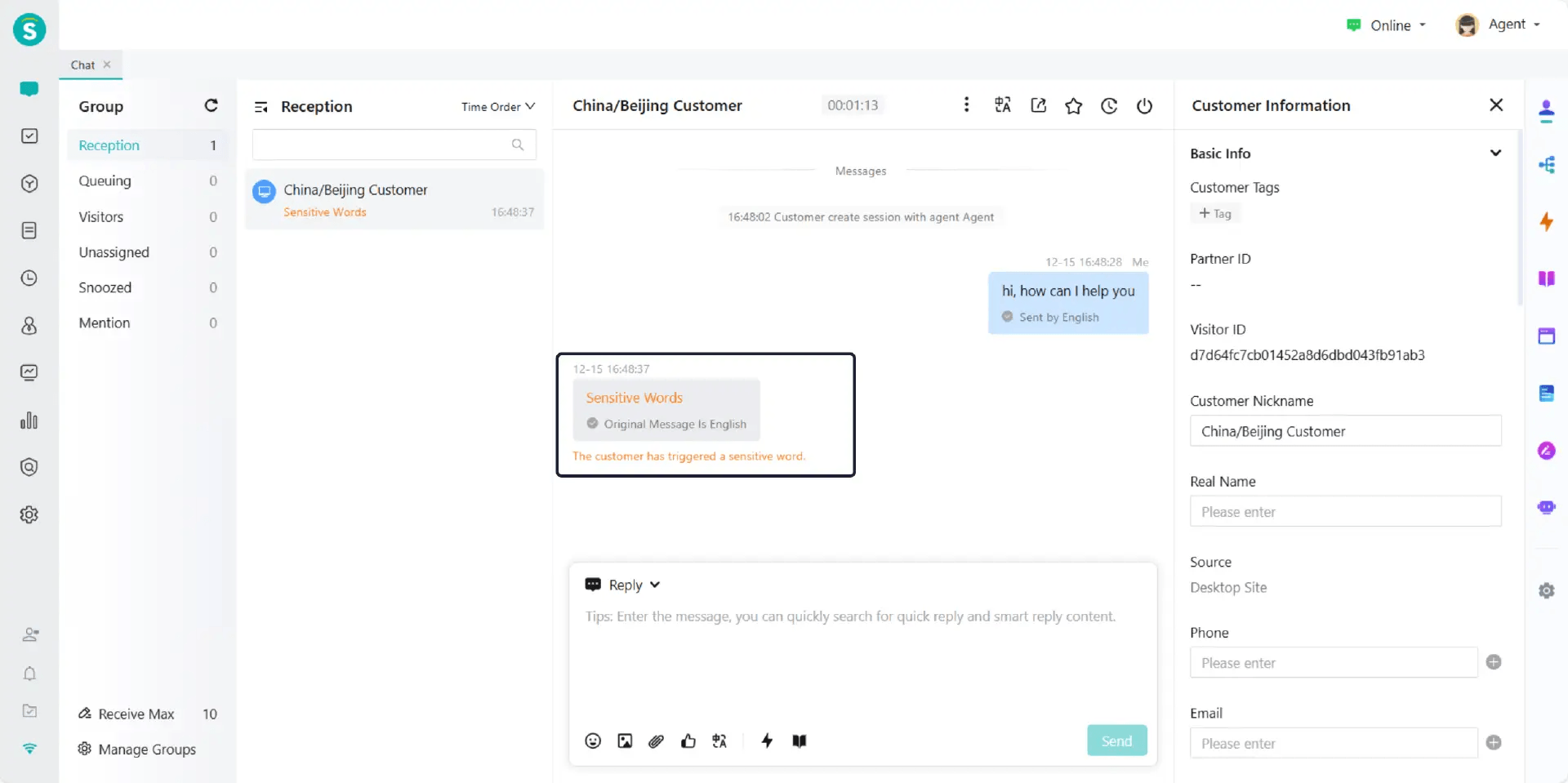 Customer sensitive words are highlighted in the chat when not encrypted. This helps agent perceive relevant information more clearly and promptly.