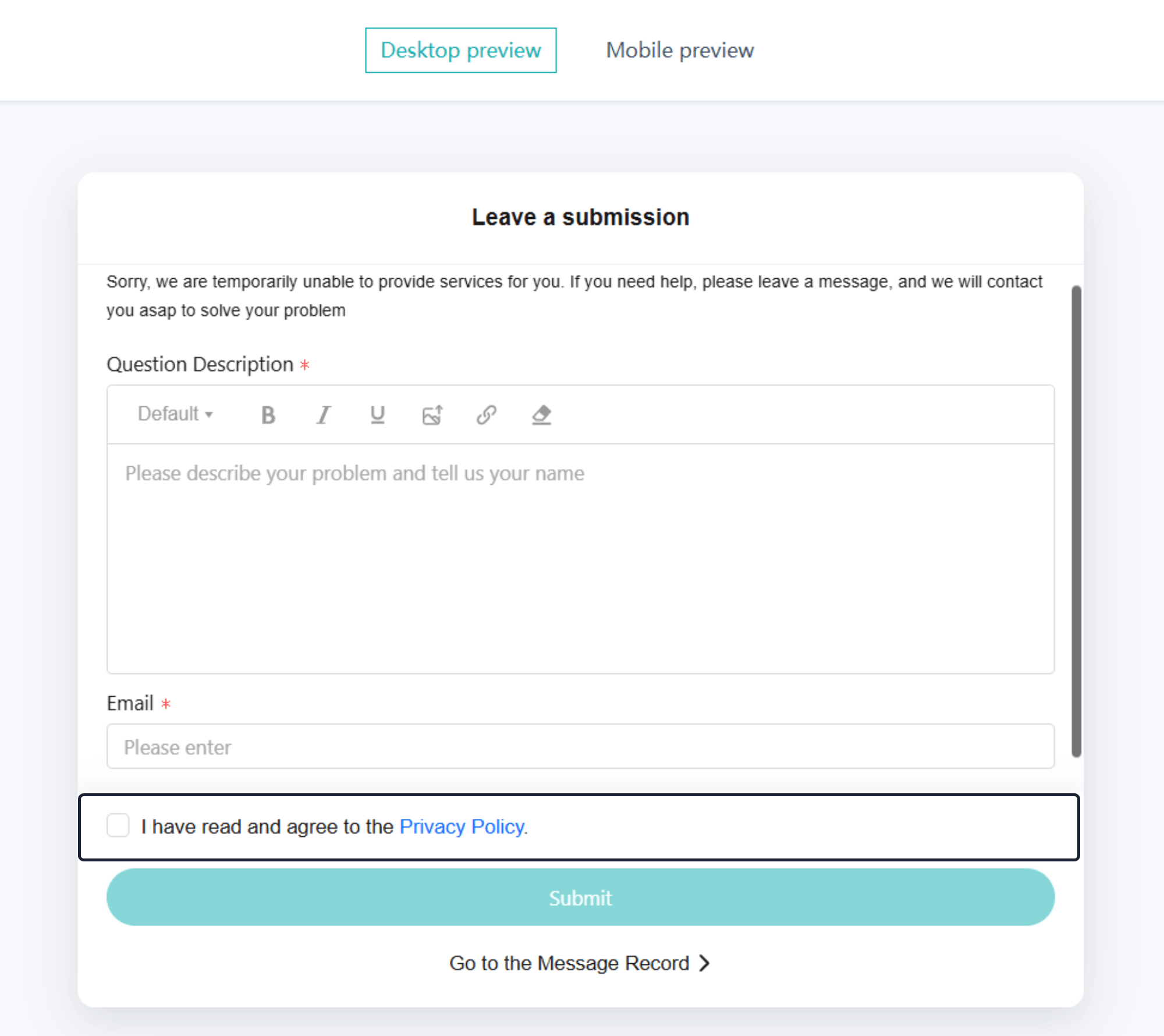 When enterprises use the ticket plug-in and need to collect sensitive information such as customer bank card numbers or ID card numbers, the current system lacks a clear information authorization process. This may lead to customers submitting sensitive data without full knowledge or explicit consent, affecting their perception of control over personal information. It may also pose compliance risks.